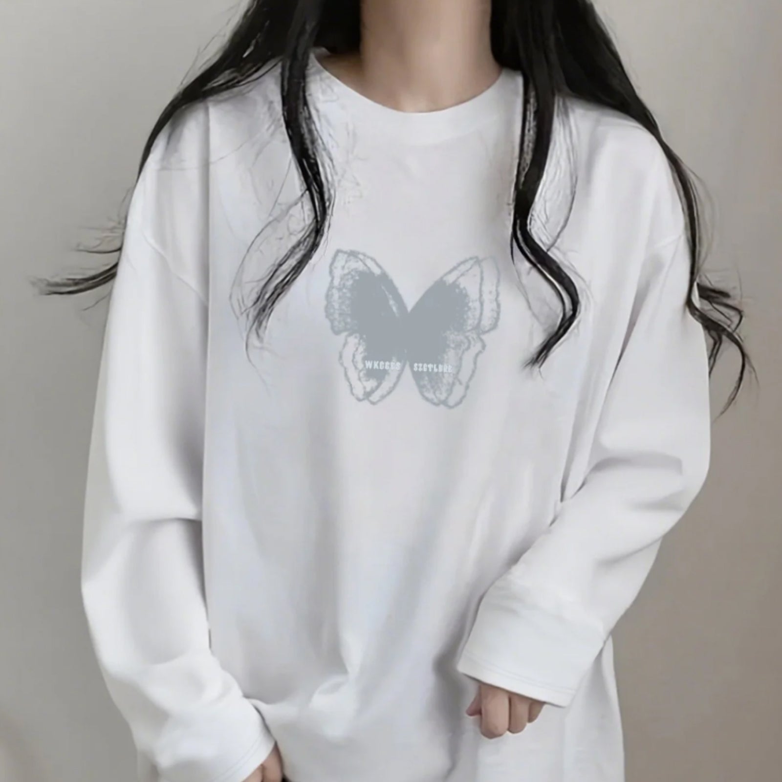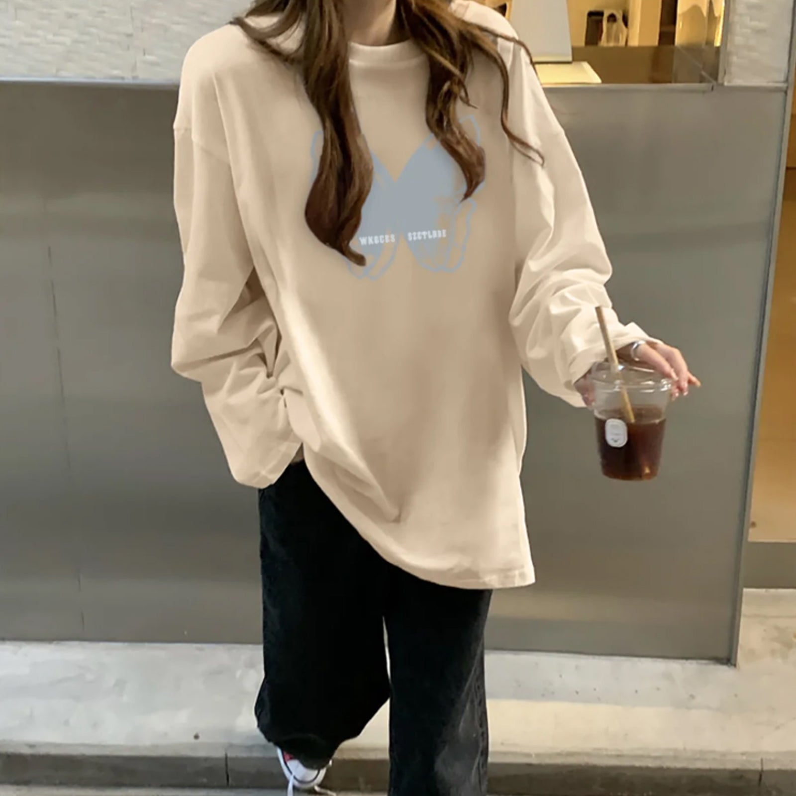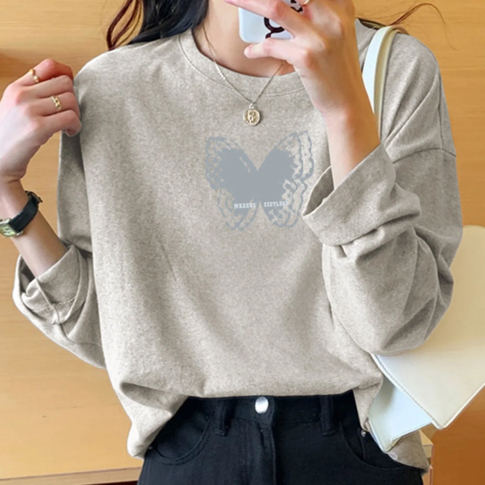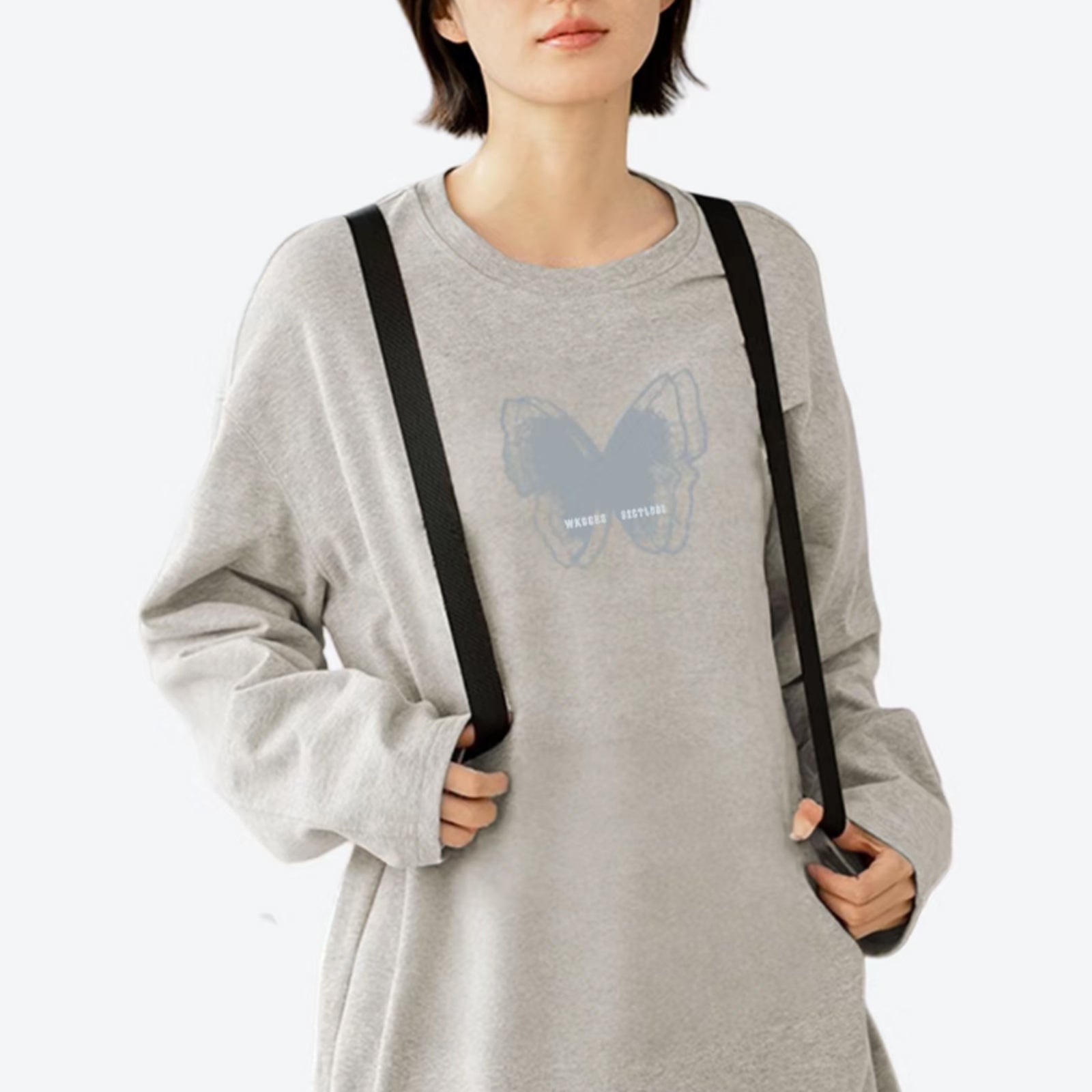 フロントに施されたアートバタフライプリントが目を引く長袖 T シャツは秋のトレンドスタイルに最適です柔らかな素材が肌に優しく長時間着用しても快適シンプルなラウンドネックでレイヤードコーデにも合わせやすいデニムパンツロングスカートレギンスなど様々なアイテムと相性が良く普段使いから旅行カフェデート週末のお散歩まで幅広いシーンで活躍します落ち着いた色合いと豊富なカラーバリエーションで大人可愛い雰囲気を演出できます